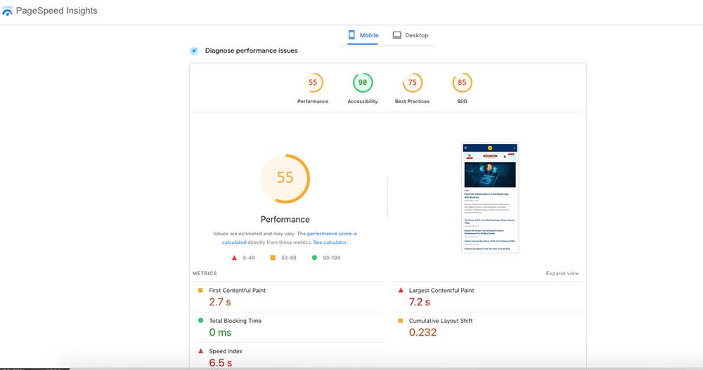 Pro Tip: These are standard page speed optimization practices—compressing images, enabling caching, trimming scripts, and using a CDN all directly improve mobile performance. It is also important to run your site through Google PageSpeed Insights to get detailed recommendations on improving load times for mobile.